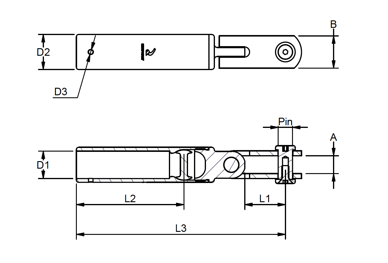 Fixed toggle with double headed pin.